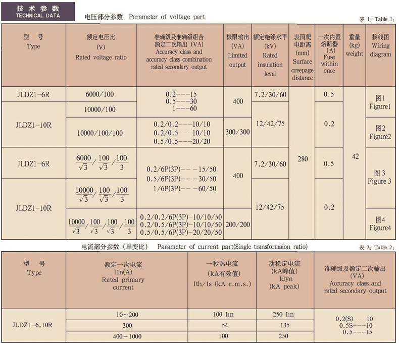 JLDZ1-6、10R系列全封闭带熔断器户内单相组合互感器