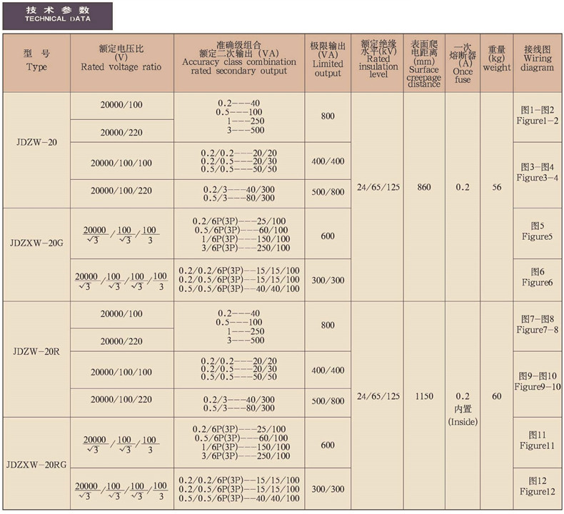 JDZW-20JDZXW-20GJDZW-20RJDZXW-20RG型户外单相电压互感器
