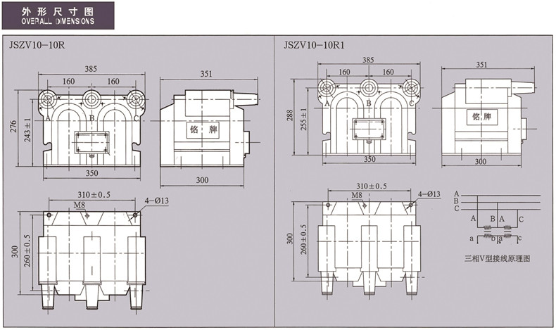 其工作原理与变压器相同,基本结构也是铁心和原、副绕组。特点是容量很小且比较恒定,正常运行时接近于空载状态。电压互感器本身的阻抗很小,一旦副边发生短路,电流将急剧增长而烧毁线圈。为此,电压互感器的原边接有熔断器,副边可靠接地,以免原、副边绝缘损毁时,副边出现对地高电位而造成人身和设备事故。测量用电压互感器一般都做成单相双线圈结构,其原边电压为被测电压(如电力系统的线电压),可以单相使用,也可以用两台接成V-V形作三相使用。实验室用的电压互感器往往是原边多抽头的,以适应测量不同电压的需要。供保护接地用电压互感器还带有一个第三线圈,称三线圈电压互感器。三相的第三线圈接成开口三角形,开口三角形的两引出端与接地保护继电器的电压线圈联接。正常运行时,电力系统的三相电压对称,第三线圈上的三相感应电动势之和为零。一旦发生单相接地时,中性点出现位移,开口三角的端子间就会出现零序电压使继电器动作,从而对电力系统起保护作用。线圈出现零序电压则相应的铁心中就会出现零序磁通。为此,这种三相电压互感器采用旁轭式铁心(10kV及以下时)或采用三台单相电压互感器。对于这种互感器,第三线圈的准确度要求不高,但要求有一定的过励磁特性(即当原边电压增加时,铁心中的磁通密度也增加相应倍数而不会损坏)。