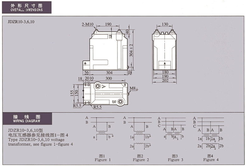 其工作原理与变压器相同,基本结构也是铁心和原、副绕组。特点是容量很小且比较恒定,正常运行时接近于空载状态。电压互感器本身的阻抗很小,一旦副边发生短路,电流将急剧增长而烧毁线圈。为此,电压互感器的原边接有熔断器,副边可靠接地,以免原、副边绝缘损毁时,副边出现对地高电位而造成人身和设备事故。测量用电压互感器一般都做成单相双线圈结构,其原边电压为被测电压(如电力系统的线电压),可以单相使用,也可以用两台接成V-V形作三相使用。实验室用的电压互感器往往是原边多抽头的,以适应测量不同电压的需要。供保护接地用电压互感器还带有一个第三线圈,称三线圈电压互感器。三相的第三线圈接成开口三角形,开口三角形的两引出端与接地保护继电器的电压线圈联接。正常运行时,电力系统的三相电压对称,第三线圈上的三相感应电动势之和为零。一旦发生单相接地时,中性点出现位移,开口三角的端子间就会出现零序电压使继电器动作,从而对电力系统起保护作用。线圈出现零序电压则相应的铁心中就会出现零序磁通。为此,这种三相电压互感器采用旁轭式铁心(10kV及以下时)或采用三台单相电压互感器。对于这种互感器,第三线圈的准确度要求不高,但要求有一定的过励磁特性(即当原边电压增加时,铁心中的磁通密度也增加相应倍数而不会损坏)。